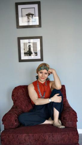 I’m back at it combining loose fitting items. This time my inspiration for this look was my favorite bohemian print scarf that I like to use as a headband. With the orange and blue pattern, I was able to break out my favorite wide leg trousers and my rust neck tie blouse. This squash blossom pendant necklace from Steve Madden really adds to the bohemian essence of this look.